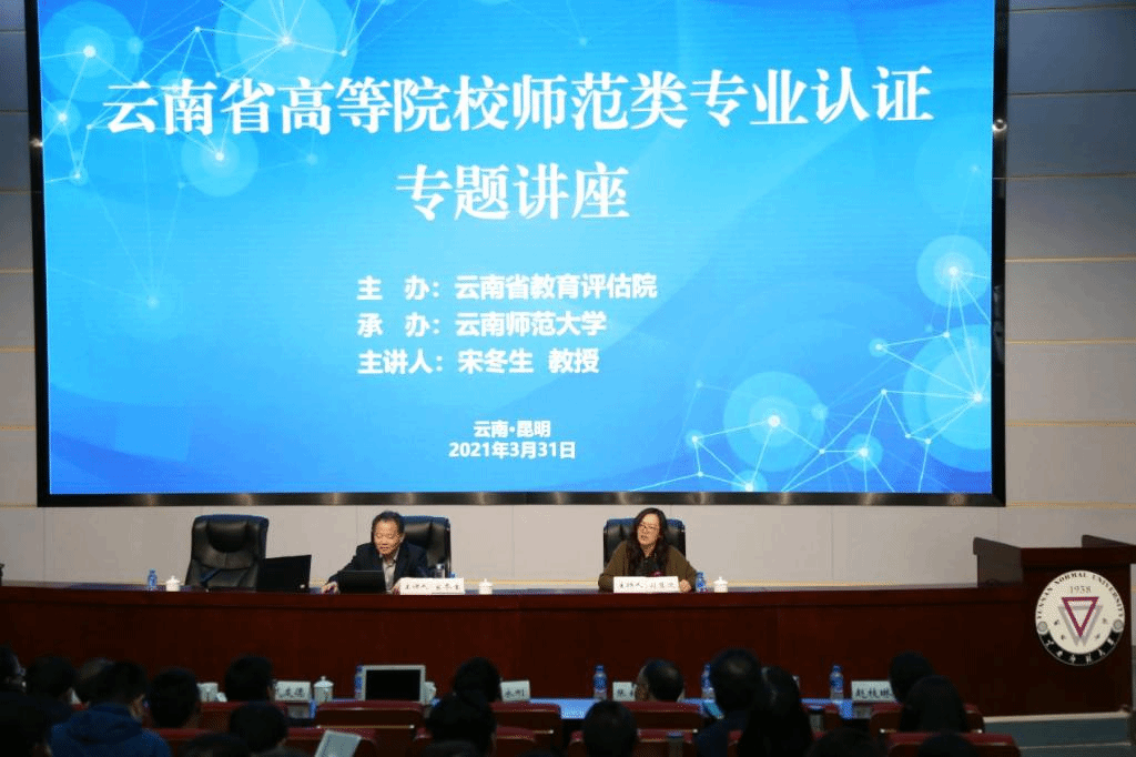 3月31日,由云南省教育评估院主办、永利官网承办的2021年云南省高等院校师范类专业认证专题讲座在呈贡校区中国西南对外开放与边疆安全研究中心报告厅举行。武友德副校长、云南省内20所本科高校分管校领导、教务处及评估部门负责人、学院及专业负责人等200余名代表参加讲座。此次讲座由教育部师范类专业认证专家委员会学术委员会宋冬生教授主讲,云南省教育评估院副院长司慧迎主持。