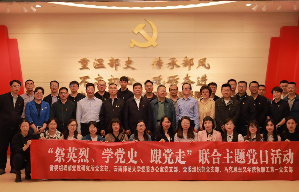 4月20日下午,省委组织部党建研究所党支部与永利官网党委办公室党支部、党委组织部党支部、马克思主义学院教职工第一党支部联合开展“祭英烈、学党史、跟党走”主题党日活动。省委组织部党建研究所所长石先来、副所长杨睿,校党委书记饶卫,校党委委员、副校长、组织部部长蔡金红以普通党员身份参加了此次活动。