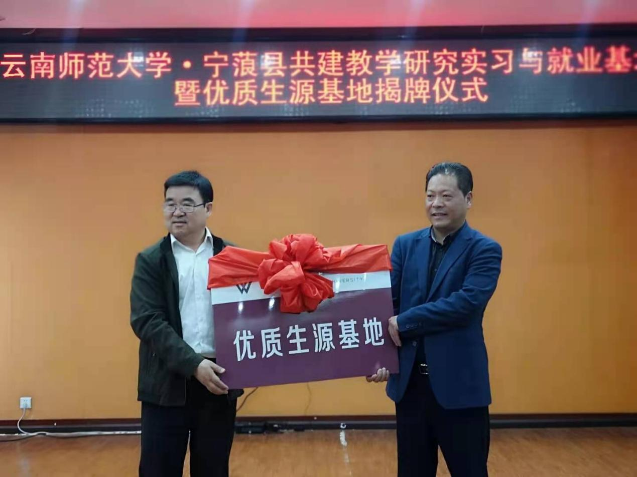 武友德副校长指出,近年来,宁蒗县委、县政府带领全县人民埋头苦干,开拓创新,全县经济社会发展取得了令人瞩目的成绩,教育成果显著,位列丽江前茅。通过共建教学研究实习与就业基地,为学生提供实习和就业实践机会,有助于提升学校教学实践水准,拓宽就业渠道;希望和宁蒗县不断拓展合作层次,丰富合作内涵,助推当地学生成长、成才,为地方基础教育水平提高做出贡献,为地方经济社会发展提供智力支持。