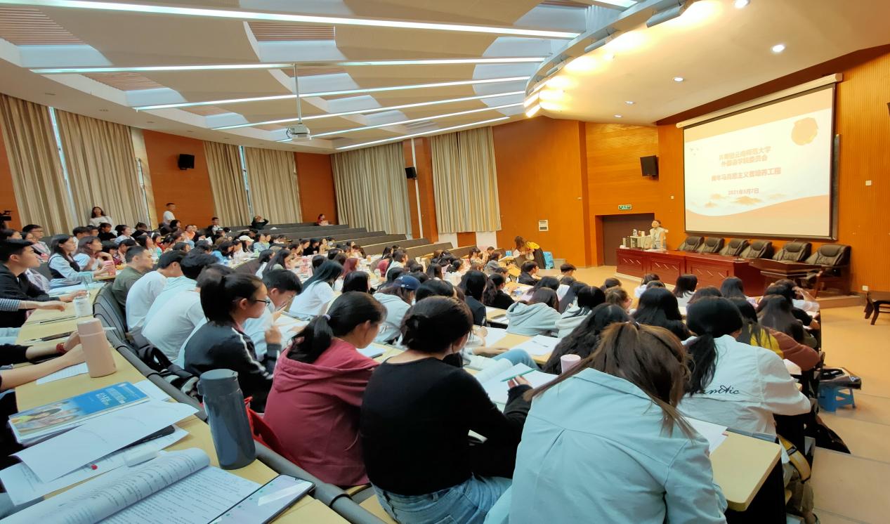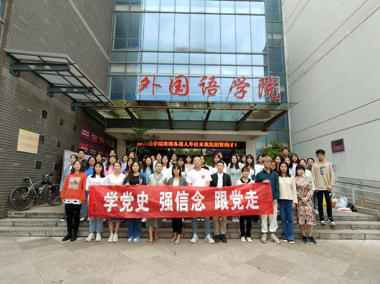 5月7日晚,永利官网党史学习教育学生宣讲团到外国语学院进行主题宣讲。外国语学院学工办主任朱晓媛老师、组织员傅炜楠老师、辅导员李文丽老师、刘书畅老师以及外国语学院团干、入党积极分子参加了此次宣讲。