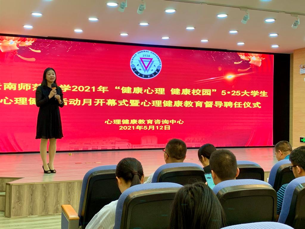 为贯彻落实《“健康中国2030”规划纲要》的要求,深入开展“健康心理 健康校园”主题教育活动,营造积极、健康、和谐的校园文化氛围,5月12日下午,永利官网举办了2021年5·25大学生心理健康活动月开幕式暨心理健康教育督导聘任仪式。本次活动由心理健康教育咨询中心主办,副校长蔡金红、心理健康教育督导、心理健康教育咨询中心教师、学生代表和心晴志愿者近200名师生参加了本次活动。活动由心理健康教育咨询中心办公室主任尚云主持。