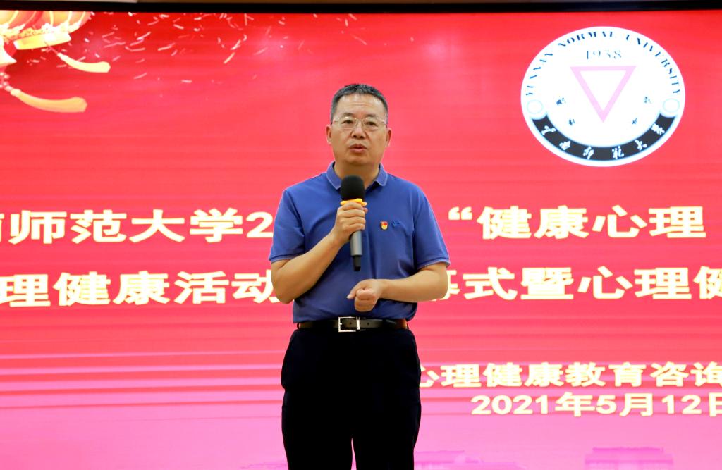 教育学部王友良代表心理健康教师发言,他表示,要关爱学生、服务学生,做好心理健康教育工作,做好学生的陪伴者、倾听者,积极探索提高学生心理素质的方法,助力学生全面发展。