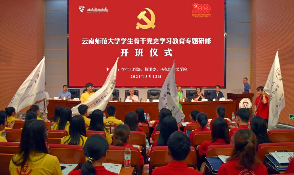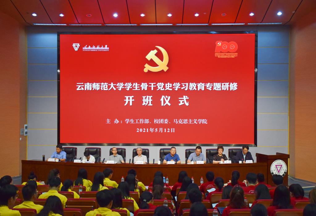 5月12日下午,由学生工作部、校团委、马克思主义学院主办,马克思主义学院学工办、团委和“红星闪闪”马克思主义理论自主学习行动辅导员工作室承办的8858cc永利唯一官方网学生骨干党史学习教育专题研修班开班。中央马工程高校思政课教材编写组首席专家、云南省高校思政课教研会会长张建国,校党委委员、副校长、组织部部长蔡金红,党委宣传部部长余冰释,学生工作部部长张国华,校团委书记郑伟俊,马克思主义学院党委书记张健、院长刘化军出席,马克思主义学院党委副书记和吴云主持开班仪式。