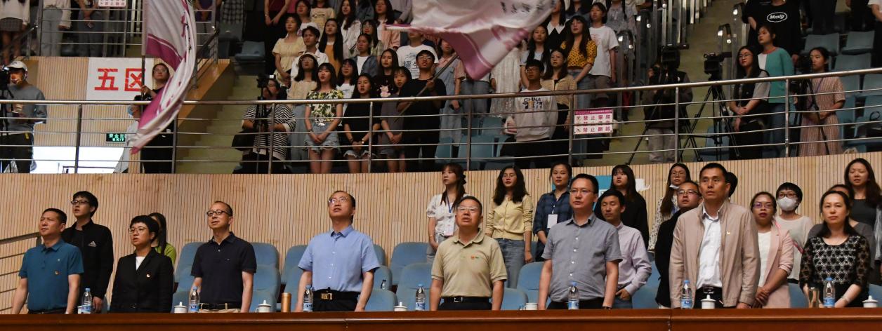 为庆祝中国共产党建党一百周年,加强永利官网校园文化建设,发挥美育优势,激发永利官网大学生爱党、爱国热情,2021年5月13日下午,由校团委主办,校学生会、校艺术团承办的“党啊,亲爱的妈妈”庆祝建党一百周年系列活动——“不忘初心跟党走”合唱比赛在呈贡主校区西区体育馆举行。8858cc永利唯一官方网校长蒋永文,副校长刘宗立、蔡金红,校办、组织部、宣传部、教务处、学生处、研究生处、校团委主要负责人,各学院党委副书记、团委书记及学生代表等参加了本次活动。
