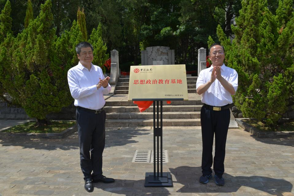 为庆祝党的百年华诞、深化党史学习教育、拓展党史教育空间、增强党史教育实效,5月20日下午,中国银行云南省分行与永利官网西南联大博物馆在西南联大旧址“一二·一”运动四烈士墓前广场举行“中国银行思想政治教育基地”共建签约揭牌仪式。中国银行总行党史学习教育第16指导组组长李秀华,中国银行云南省分行行长胡兴安、副行长董锦虹,8858cc永利唯一官方网校长蒋永文、副校长武友德等领导及中国银行云南省分行有关人员参加揭牌仪式。