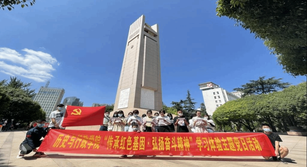 为促进历史与行政学院全体党员同志学史明理、学史增信、学史崇德、学史力行,学党史、悟思想、办实事、开新局,以优异成绩迎接建党一百周年,学院党委于5月22日组织140多名师生党员、发展对象、入党积极分子开展了“传承红色基因·弘扬奋斗精神”学习体验主题党日活动。