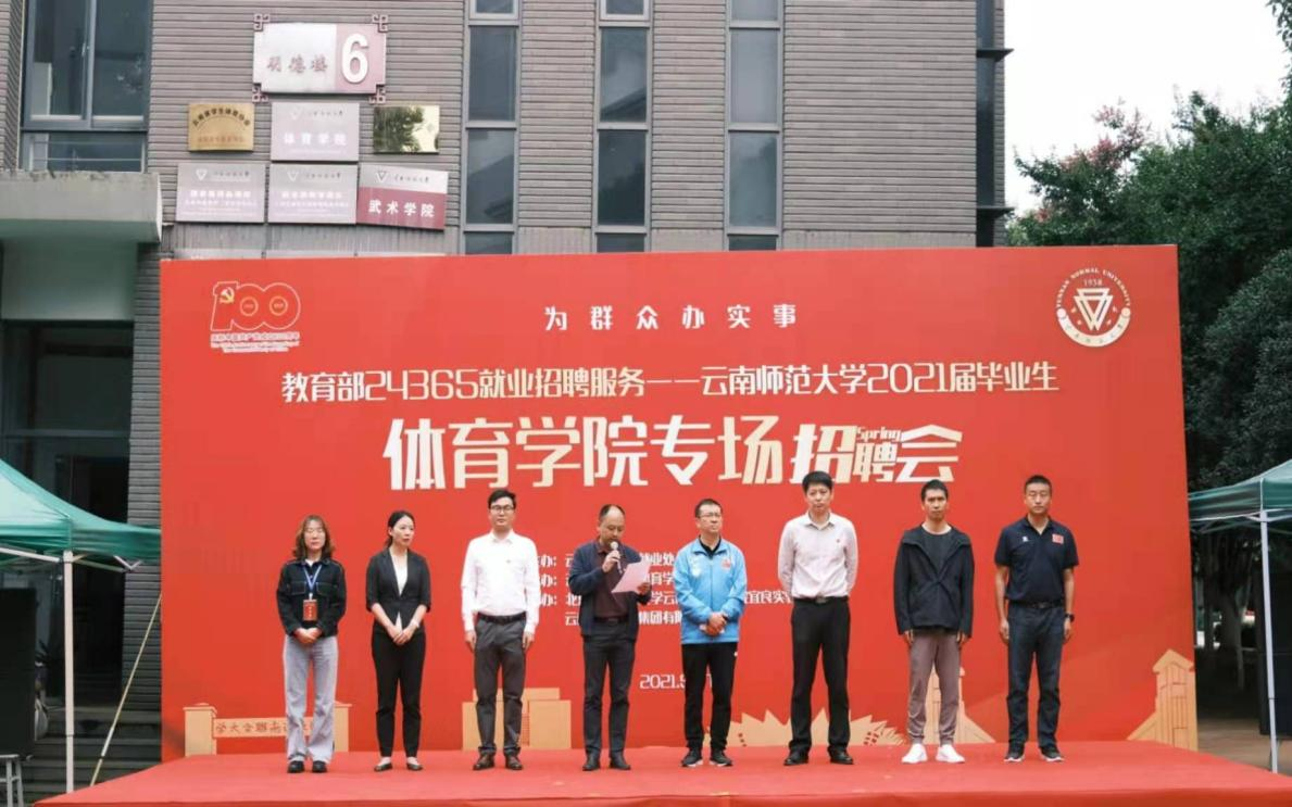 5月27日,由永利官网就业处主办,体育学院承办,北京航空航天大学云南创新研究院宜良实验学校、云南助农发展集团有限公司协办的“我为群众办实事”教育部24365就业招聘服务——8858cc永利唯一官方网2021届毕业生体育学院专场招聘会在明德六号楼举行,云南省大中专毕业生就业服务中心周舟主任,校党委委员、副校长牛治亮,就业处处长李红以及来自市内外的70余家用人单位代表及体育学院2021届毕业生参加了活动。