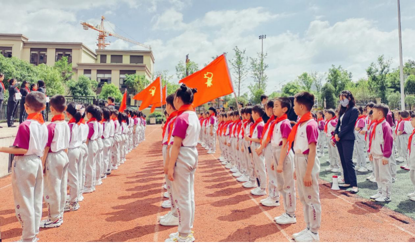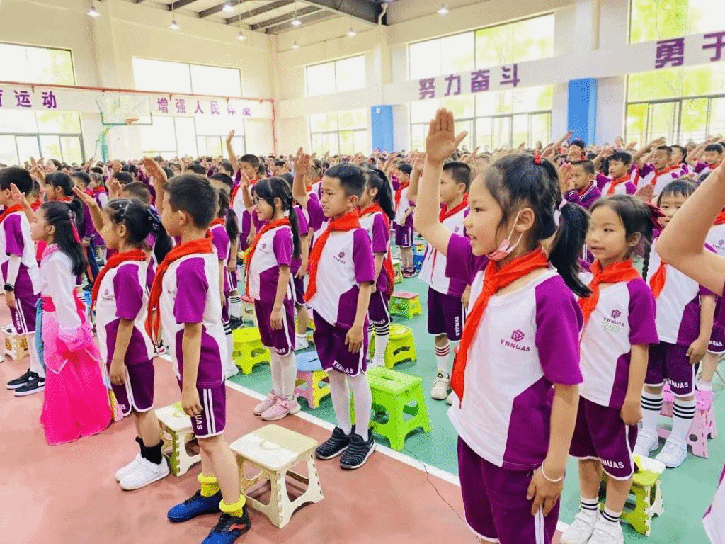 8858cc永利唯一官方网附属丘北中学小学部举行“红领巾心向党,庆祝建党100周年”入队仪式,激励少先队员沿着党、团、队传承红色基因链条不断成长进步。