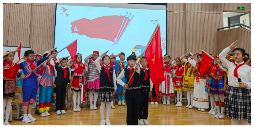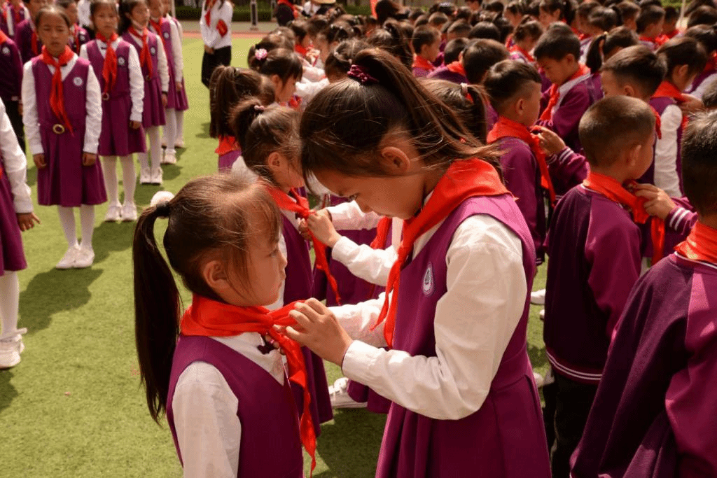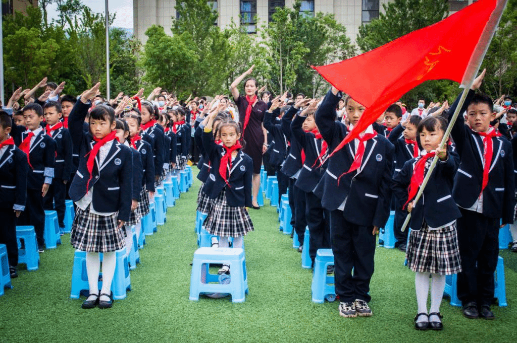 8858cc永利唯一官方网实验中学附属小学(昆明湖校区)在这个充满幸福、快乐与甜蜜的日子里举行“红领巾·心向党”新队员入队仪式。