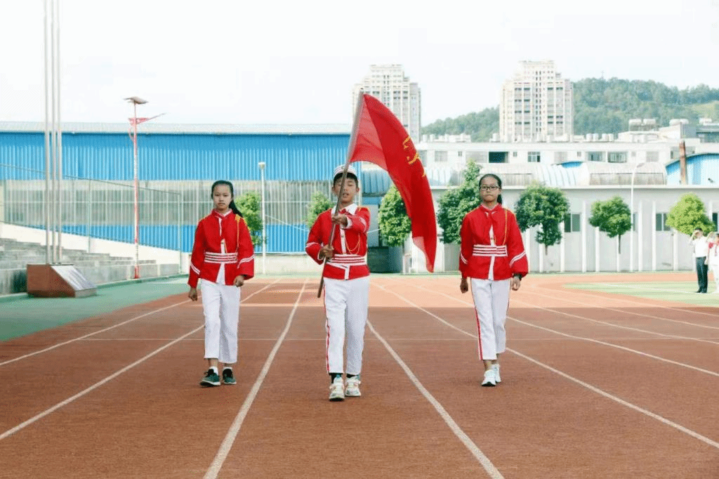 在队旗的见证下,新入队的少先队员们戴上了鲜艳的红领巾,成为了一名光荣的少先队员。火红的队旗高高飘扬,指引少儿前进的方向。鲜艳的红领巾系满理想,如一只红船,载着少儿扬帆远航。