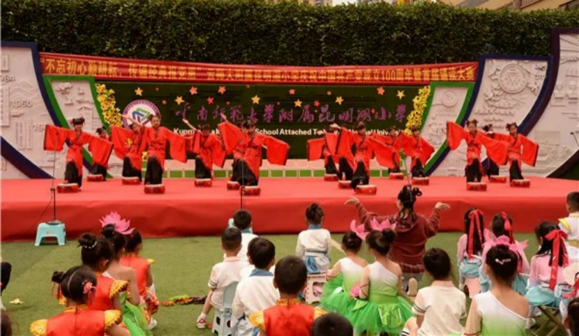 8858cc永利唯一官方网附属官渡小学展演“红领巾心向党·阳光下成长”节目。