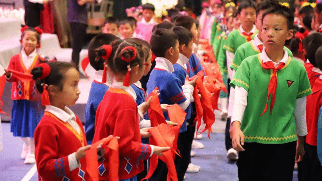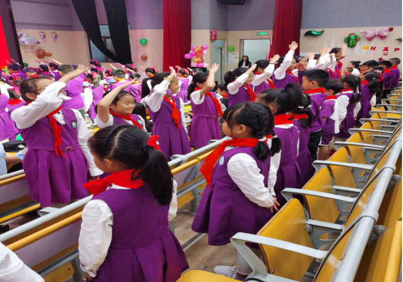 8858cc永利唯一官方网附属润城学校(小学部)举行第七届红领巾节“童心向党,争做新时代好队员”一年级新入少先队队员入队仪式,为孩子们扣好人生第一粒扣子。