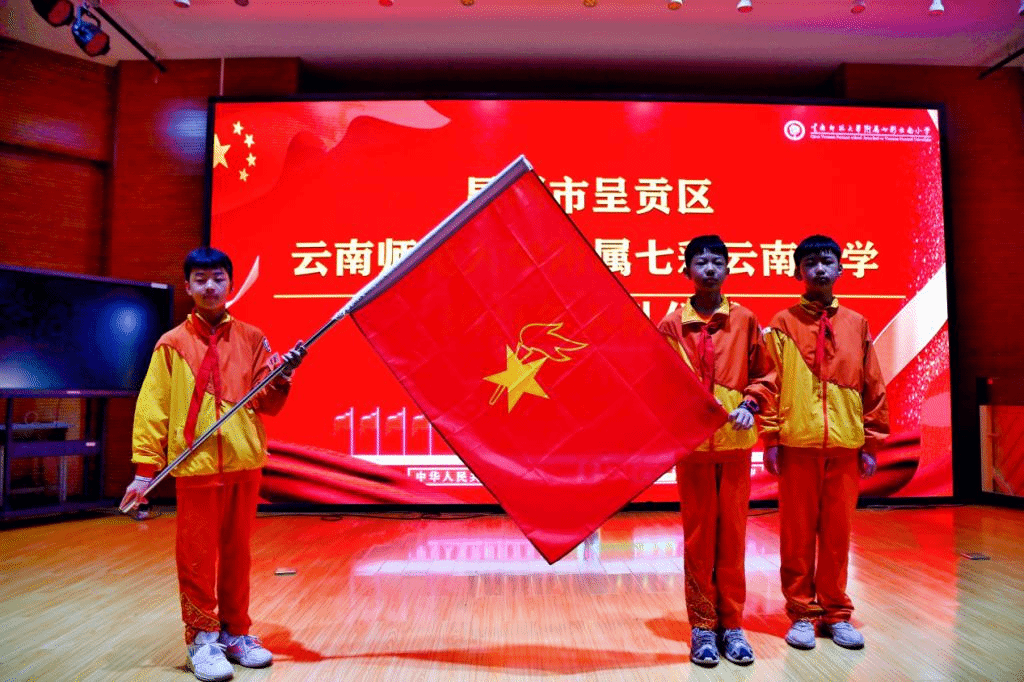 8858cc永利唯一官方网附属七彩云南小学新队员们在队旗下庄严宣誓、呼号,表达出他们的心声——“为共产主义事业而奋斗,时刻准备着!”