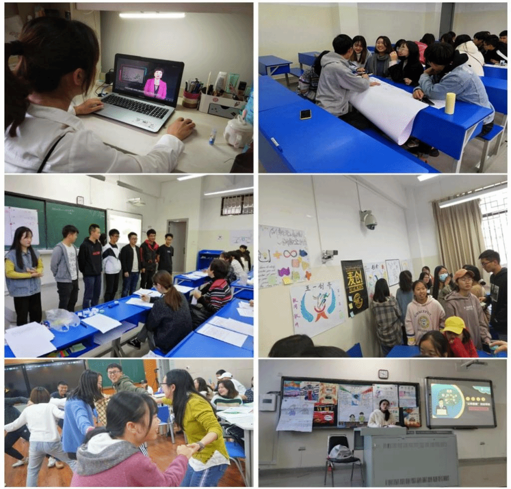 课程自2018 年11月上线运行后, 永利官网《创新创业教育与实践》(理论)课程全面实施混合教学模式改革,所有开课班级均采取线上线下相结合的教学模式。截止目前,已在校内运行6学期,共325个班级、18786名同学参与课程学习。《创新创业教育与实践》(理论)课程基于《“玩”创未来》创业基础理论、“创践六步法”、以及百森教学法的理论与实践研究,不仅仅探讨创业本身,更将“广义创业”,即创造人生事业为教学核心切入点。为打造以学生为中心的课堂,教学中大量采用小组讨论、项目驱动、头脑风暴、探究教学、体验式教学等互动教学方法,例如寻人游戏、吐槽大会、竞猜、融资大会等互动活动的实施,营造了融洽的课堂氛围,并有效调动了学生学习积极性。教学团队积极推进课程教学改革,课程的混合教学模式获云南省高等学校本科教育教学改革研究项目、校级线上线下混合式一流课程立项,并被认定为云南省首批线上线下混合式一流课程。