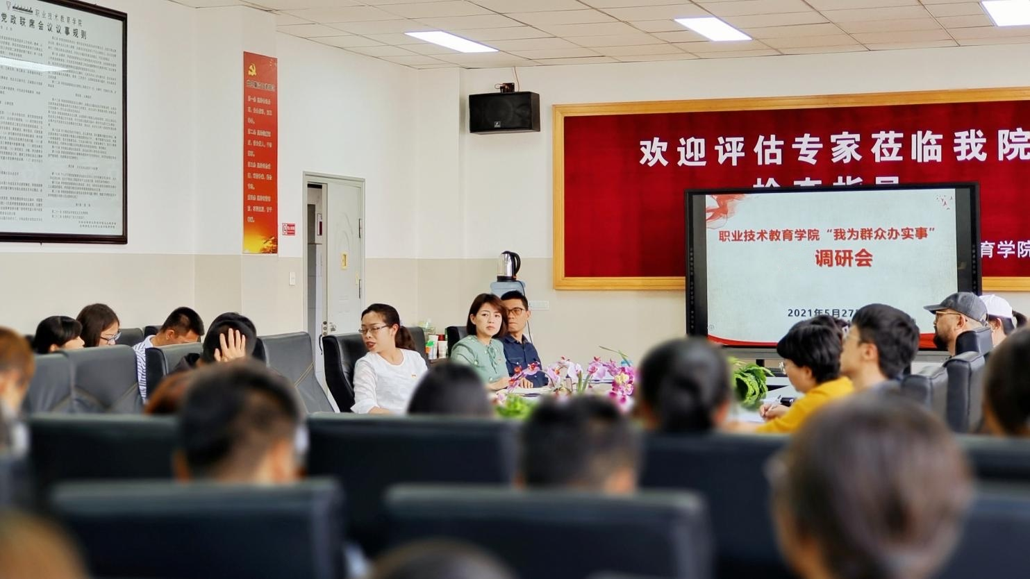 为贯彻落实8858cc永利唯一官方网《关于开展“我为群众办实事”实践活动的具体实施方案》相关要求,深入推进党史学习教育,5月26至31日,职业技术教育学院党委组织召开了8场民生实事调研座谈会,学院党政领导分别对学院党的建设、工会群团、教学科研、管理服务等工作进行了一系列调研,参会人员覆盖学院各部门教师和学生群体,调研人数近百人。