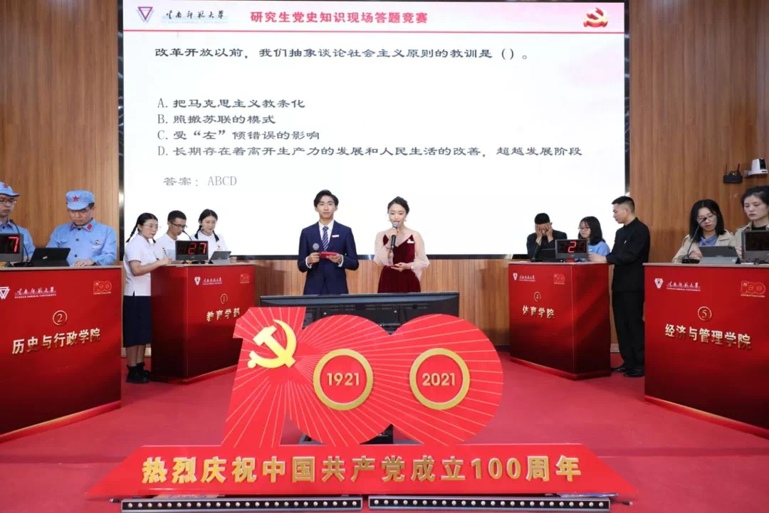为全面贯彻落实习近平总书记在党史学习教育动员大会的讲话精神,进一步推进党史学习教育往深里走、往实里走,检验研究生党史学习教育的效果,6月10日下午,由研究生处、校团委组织的研究生党史知识答题竞赛暨课外科技学术文体活动颁奖典礼在呈贡校区汇学楼2幢报告举行。校党委副书记李宏,学校学工领导小组成员单位领导,各研究生培养单位书记、副书记、辅导员以及研究生代表500余人参加了本次活动。