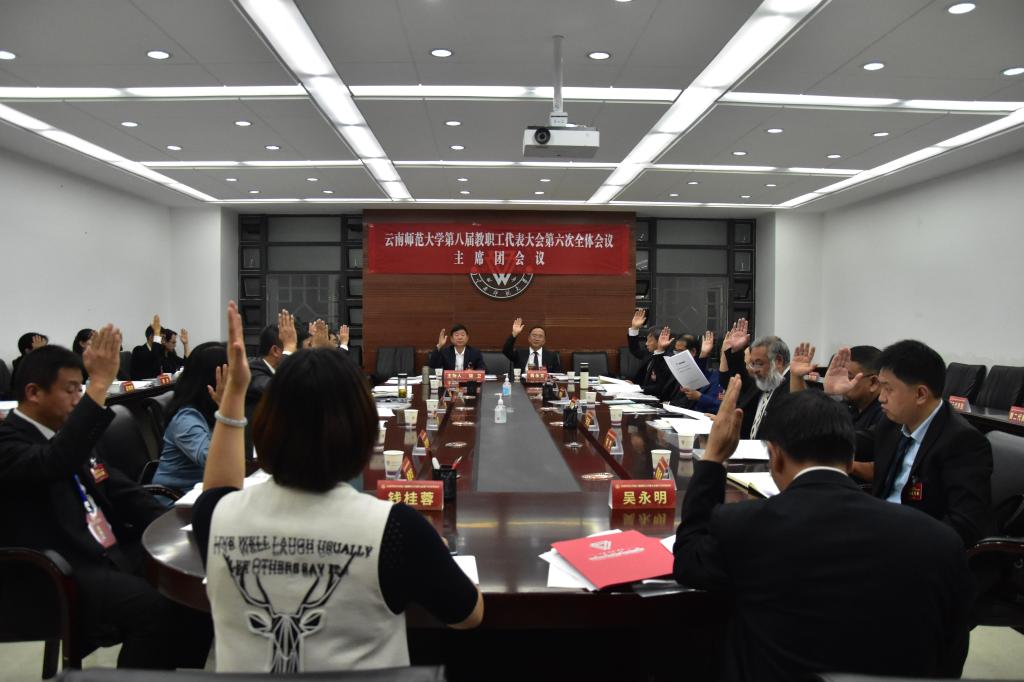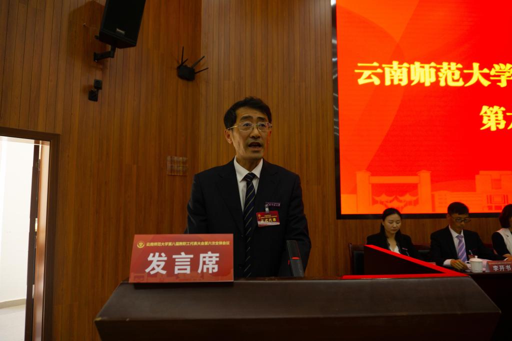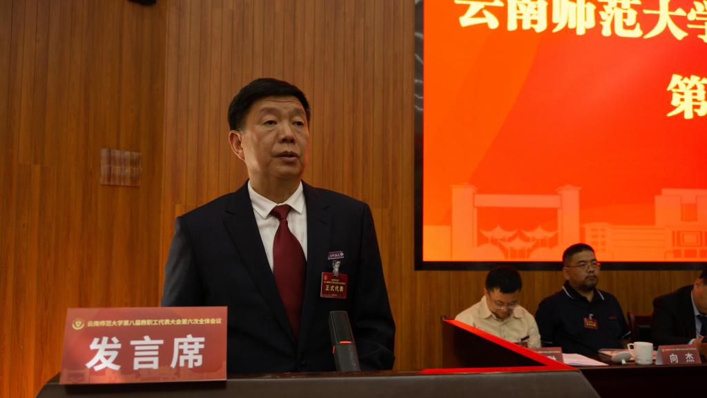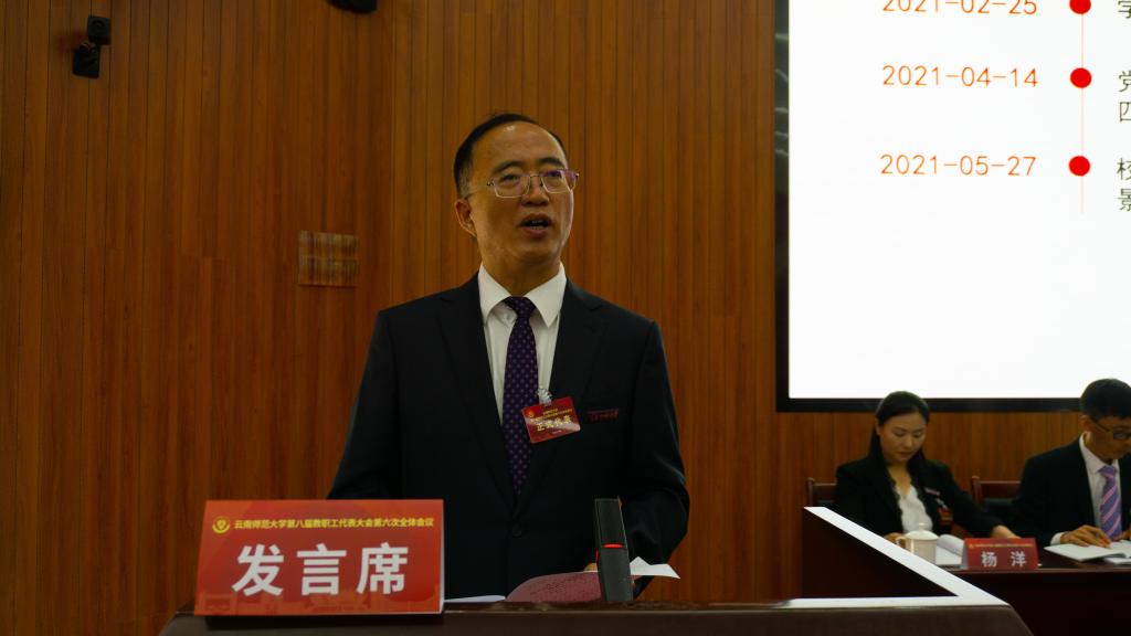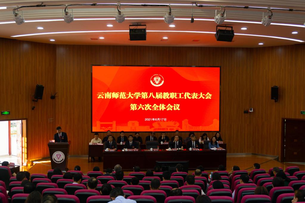 6月17日下午,学校在呈贡校区汇学楼2幢101报告厅召开第八届六次教职工代表大会,审议并原则通过《8858cc永利唯一官方网建设发展第十四个五年规划和二〇三五年远景目标纲要》(草案)。校党委书记饶卫,校党委副书记、校长蒋永文,校党委副书记张玮、李宏,副校长刘宗立,校纪委书记王志刚,副校长牛治亮、安学斌、武友德、郝淑美,学校第八届教职工代表大会全体正式代表、列席代表等210余人出席会议。大会由校党委副书记、工会主席张玮主持。