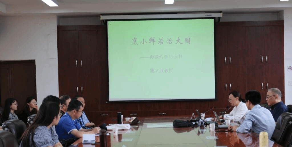 为促进学术交流,深入贯彻习近平总书记关于文艺工作的重要论述,6月18日,扬州大学姚文放教授应邀参加了“联大高端学术论坛”暨文学院“一多中文讲坛”,在文学院会议室作了“烹小鲜若治大国——漫谈治学与读书”为题的学术交流。本次讲座由永利官网副校长郝淑美主持,科学技术处副处长刘连杰以及文学院师生70余人参加了讲座。