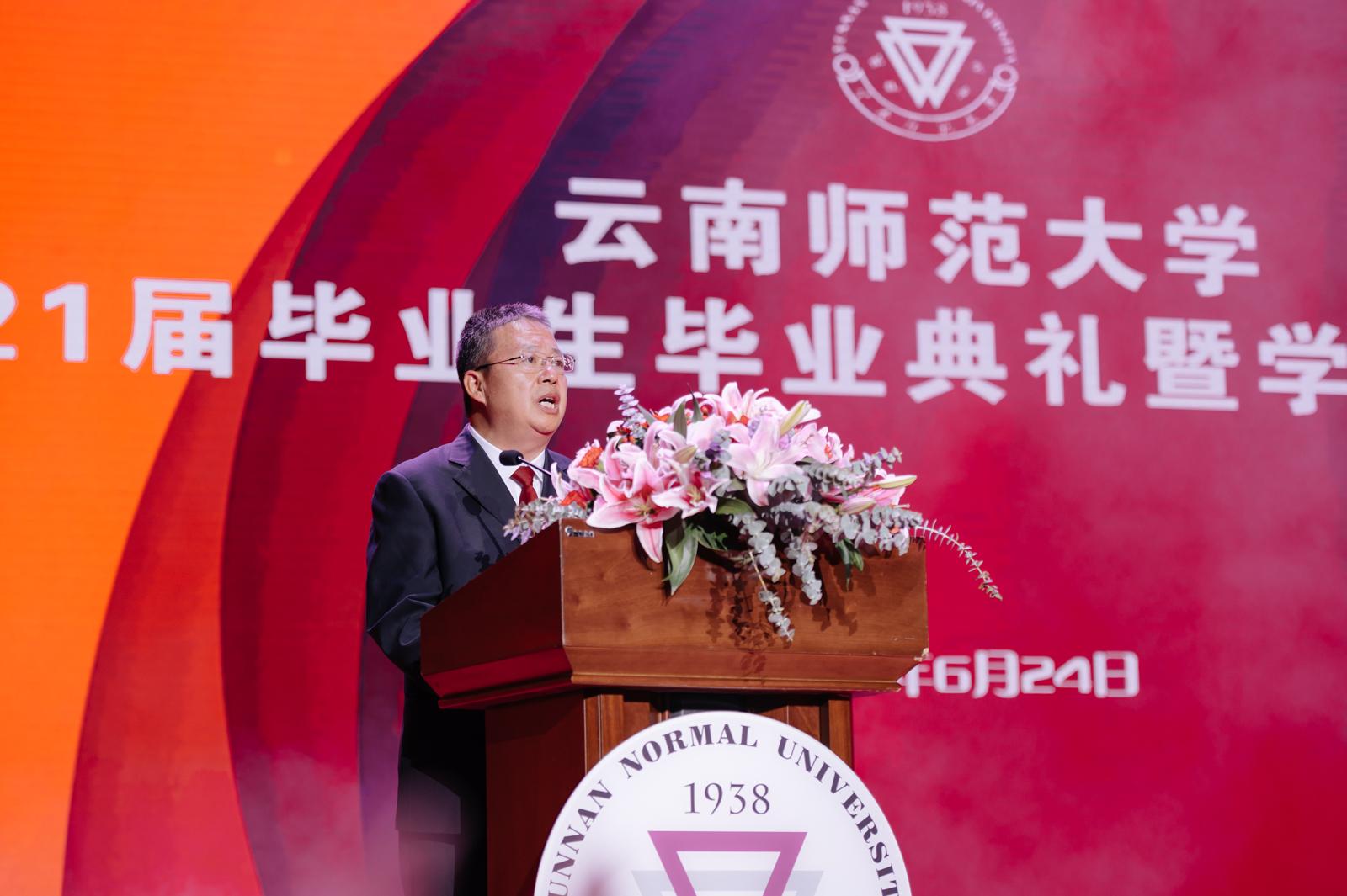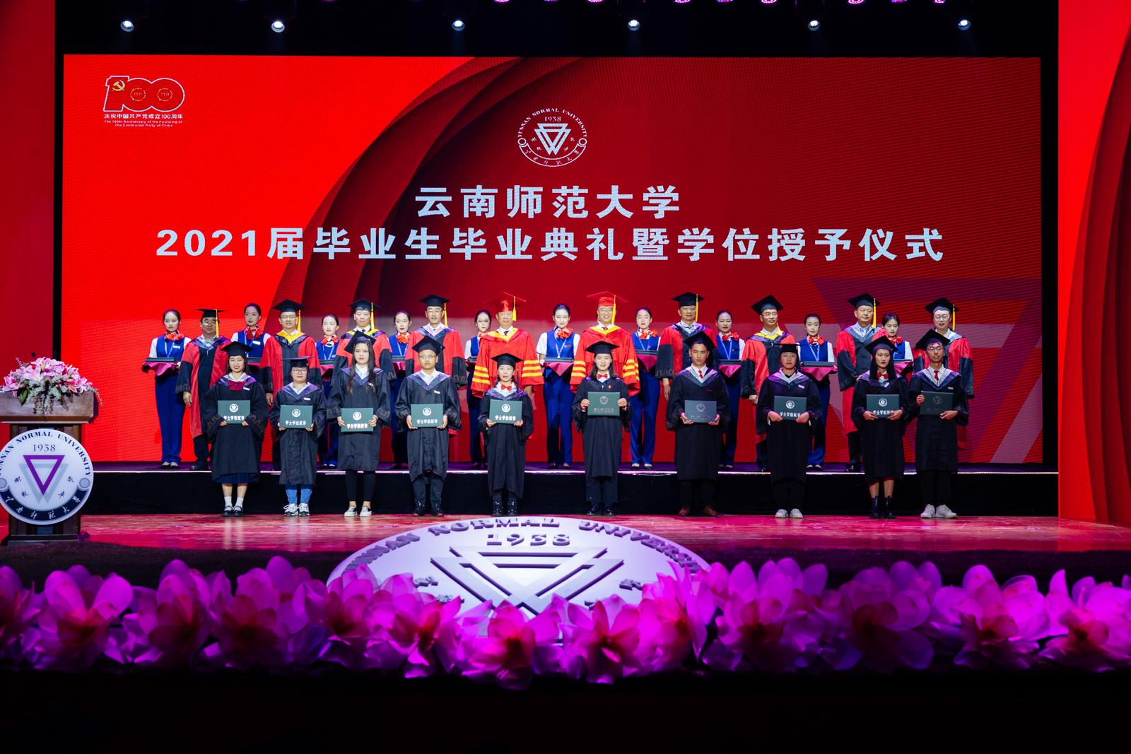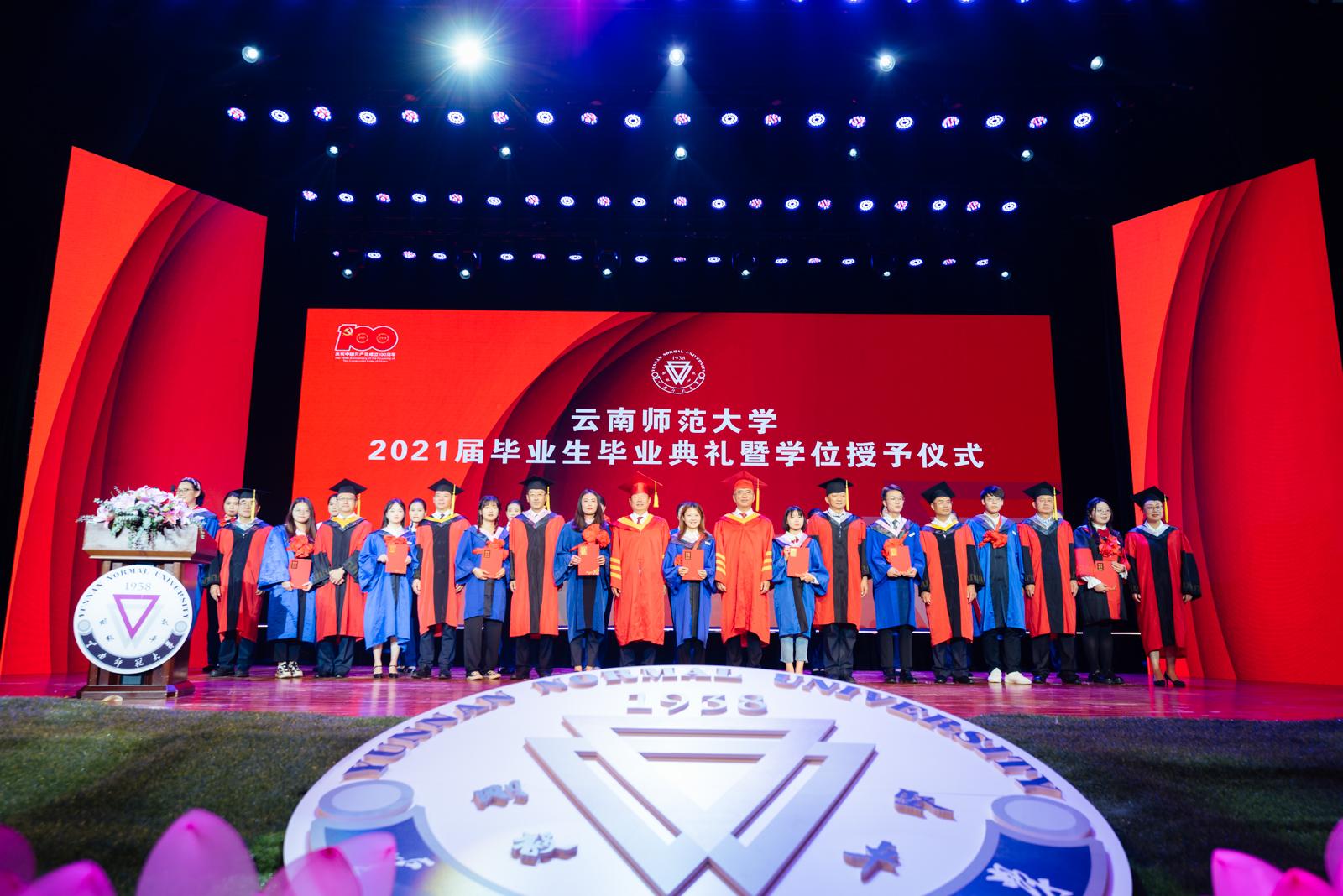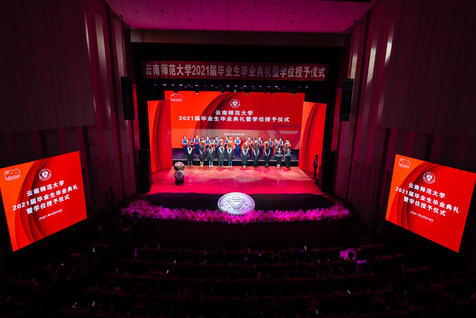 6月24日下午,8858cc永利唯一官方网2021届毕业生毕业典礼暨学位授予仪式在呈贡主校区明德5号楼演播厅举行。校党委书记饶卫,校长蒋永文,校党委副书记张玮、李宏,副校长刘宗立,校纪委书记王志刚,副校长牛治亮、安学斌、武友德、蔡金红、郝淑美,校学生工作领导小组成员单位负责人,各学院(学部)教师代表、毕业生代表共600余人参加毕业典礼。毕业典礼采取线上线下相结合的形式,超过10余万人次点击观看了现场同步直播。