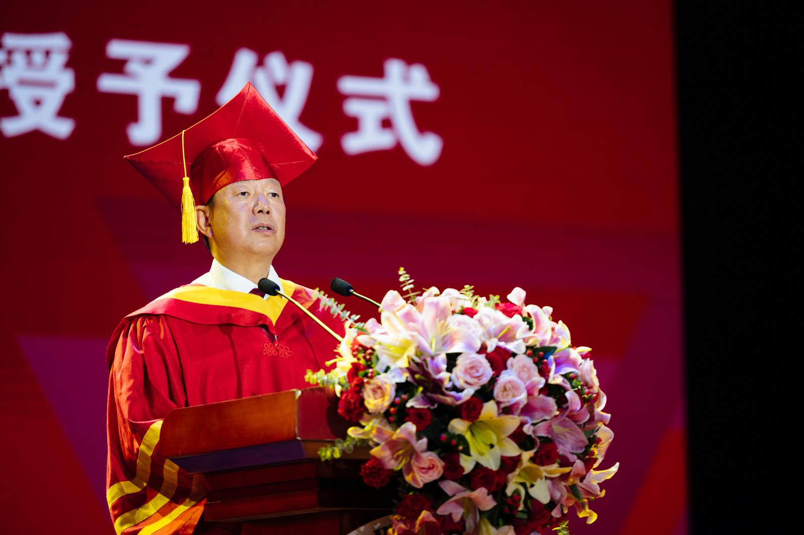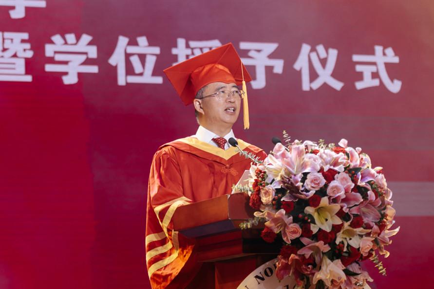 校学位评定委员会主席、校长蒋永文代表8858cc永利唯一官方网全体教职员工,向今年毕业的7420名本科生、1608名硕士和博士致以热烈祝贺。蒋校长指出,同学们生活在一个伟大的时代,“两个一百年”奋斗目标历史交汇,中华民族伟大复兴战略全局和世界百年未有之大变局深度交融。在国家乘势而上开启全面建设社会主义现代化国家新征程,向第二个百年奋斗目标进军的伟大历史阶段,同学们的时代令人羡慕,既充满无限机遇,也肩负着书写时代历史的重担,更存在前所未有的挑战。为此,蒋校长对全体毕业生提出三点殷切期望:一是希望全体毕业生不忘初心,志存高远。永葆修身报国、胸怀天下的崇高追求,把个人发展、人生价值与时代需要、国家民族发展需要紧密结合,在实现中华民族伟大复兴的新征程上建功立业。二是希望全体毕业生脚踏实地,砥砺前行。梦想是天上的星辰,永恒地照亮我们的人生;现实是脚下的土地,真实地记录着我们的足迹。作为时代新人,要走出“舒适圈”、勇闯“无人区”,主动拒绝“躺平”,积极应对“内卷”,用一点一滴的积累和锲而不舍的努力,面对人生路上的挫折与考验,迈向美好的未来。三是希望全体毕业生勇于创新,引领时代。坚持培养创新性心态、开拓创新性视野、提升创新性能力,始终以创新的思维对待学习、工作甚至生活的方方面面,在创新中激发灵感,在创新中实现价值,在创新中引领时代。