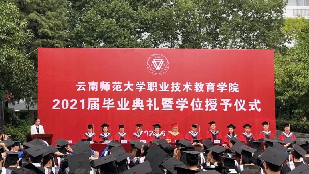 6月25日上午,职业技术教育学院2021届毕业典礼暨学位授予仪式在8858cc永利唯一官方网一二·一西南联大校区举行。校党委委员、副校长牛治亮,职业技术教育学院党委书记刘虹、院长杨智,学院领导班子成员、学位评定分委员会委员、系主任、辅导员、班主任、教师代表以及2021届毕业生参加了毕业典礼。典礼由学院党委副书记向斯楠主持。