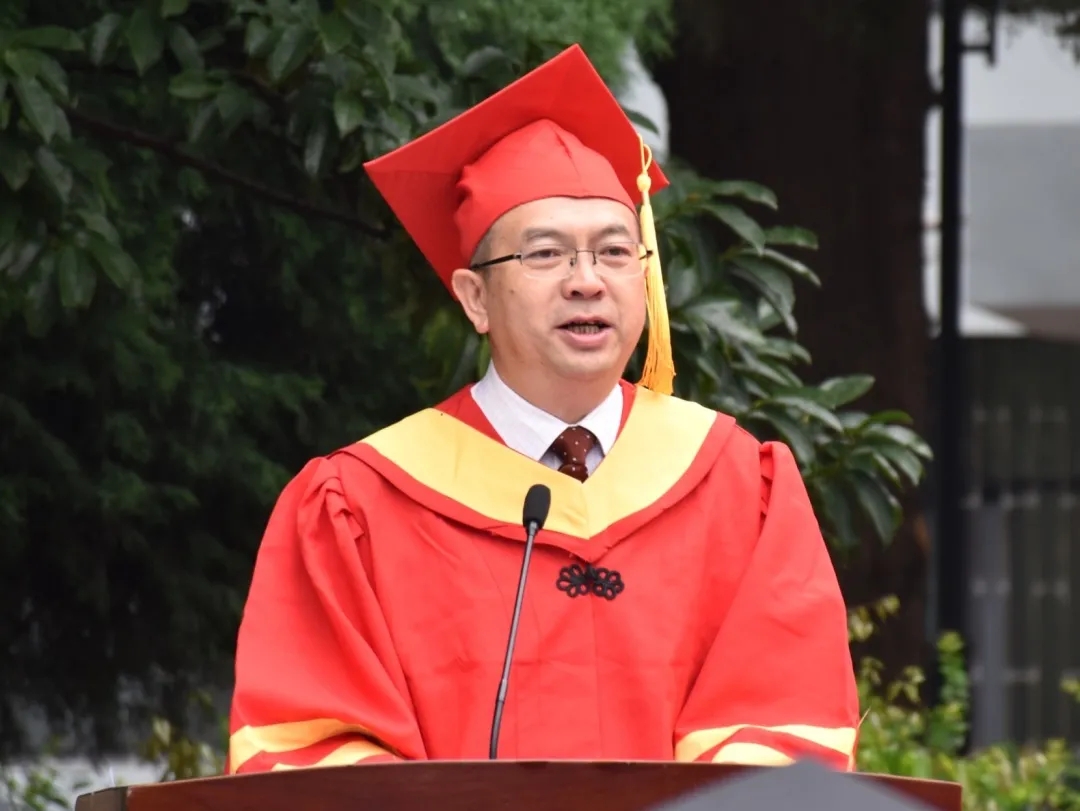 毕业典礼在庄严雄壮的国歌声中拉开序幕。牛治亮副校长致辞,希望广大毕业生们要时刻牢记习近平总书记的嘱托,一是“立大志”,厚植家国情怀,成为有责任感和使命感的师大人;二是“明大德”,筑牢理想信念,自觉树立和践行社会主义核心价值观,矢志追求更有高度、更有境界、更有品位的人生;三是“成大才”,练就过硬本领,在实现中华民族伟大复兴和个人抱负的新征程上,勤勉笃行,初心不改;四是“担大任”,勇于砥砺奋斗,争做走在时代前列的奋进者、开拓者和奉献者,秉承“刚毅坚卓”的校训精神,砥砺奋进,弛而不息。