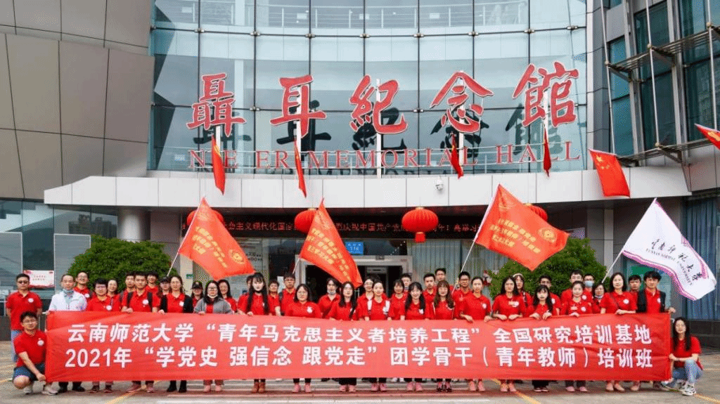 为贯彻落实习近平总书记在党史学习教育动员大会上的重要讲话精神和2020年初考察云南时关于讲好“聂耳和国歌的故事”的要求,校团委于2021年6月25日赴玉溪开展了“沿着聂耳的足迹 汲取奋进的力量”党史学习教育主题团日活动。校团委全体人员、8858cc永利唯一官方网“青年马克思主义者培养工程”全国研究培训基地2021年“学党史 强信念 跟党走”团学骨干(青年教师)培训班全体学员参加活动,与团玉溪市委、玉溪市学联、玉溪师范学院团委相关同志一起,共同探寻聂耳与国歌的故事,实地推进党史学习,传承红色基因,汲取奋进力量,增进团学工作交流与合作。