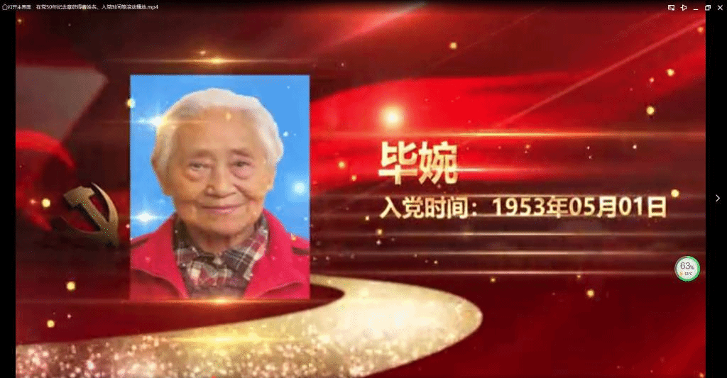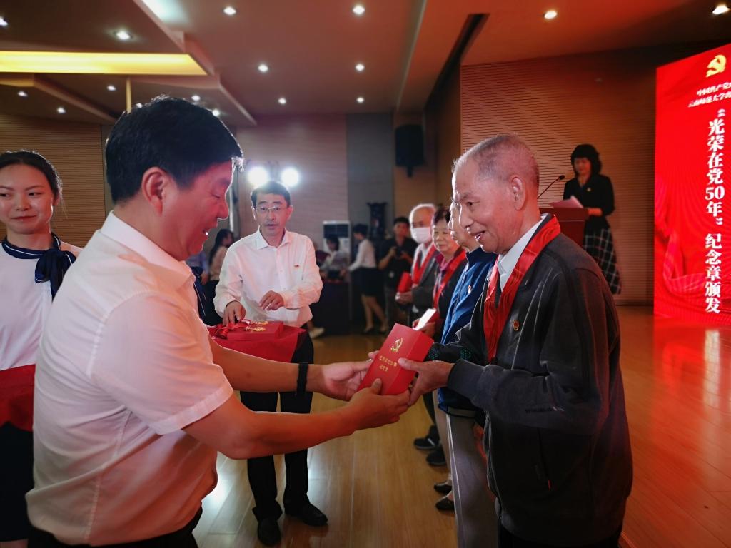 接着播放了离退休教职工党委获得中共中央“光荣在党50年”纪念章党员视频。离退休教职工党委今年共有165名党员获得“光荣在党50年”纪念章。