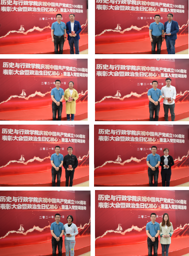 为热烈庆祝中国共产党成立100周年,7月1日上午,历史与行政学院140余名师生党员在学院报告厅集中收听收看党中央庆祝中国共产党成立100周年大会,随后举行庆祝中国共产党成立100周年表彰大会暨政治生日忆初心•重温入党誓词活动。大会对获学校优秀党员、优秀党务工作者和先进基层党组织予以表彰。学院处级党员领导干部、20年党龄及以上老党员、普通师生党员代表、2021年新发展党员参加大会,大会由学院党委副书记徐振坤主持。