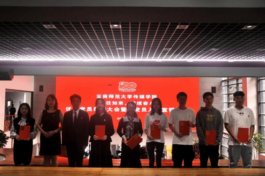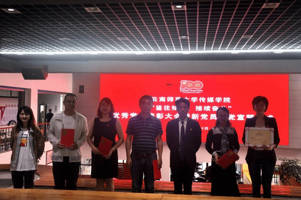 百年恰是风华正茂,青春正当奋进前行。在中国共产党成立100周年之际,7月1日上午,传媒学院举行“鉴往知来,接续奋斗”优秀党员表彰大会暨新党员入党宣誓仪式。学院党委书记张天明、副院长牛凌燕、杜忠锋、阮艳萍,师生党支部书记及支委、受到学校和学院表彰的优秀共产党员、先进党支部代表、2021上半年新发展党员共80人参加了仪式。仪式由学院党委副书记王平平主持。