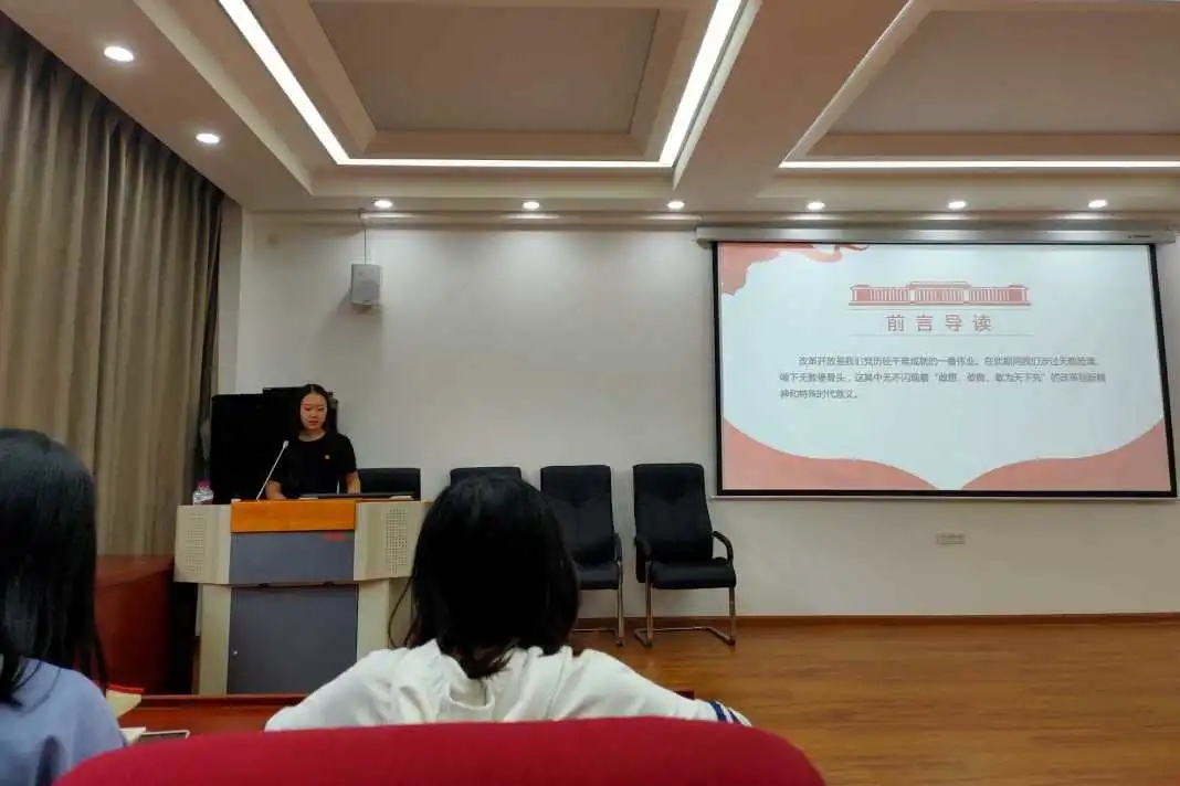 第三场党史学习读书分享会围绕改革开放和社会主义现代化建设新时期展开,由小学教育第二党支部、旅游管理党支部的6位党员代表共同分享。党员们以视频和演讲的形式,共同学习了党的十一届三中全会精神、“一国两制”构想和党的十四大精神等,让党员们更加深刻地体会到“中国共产党为什么能,马克思主义为什么行,中国特色社会主义为什么好”。