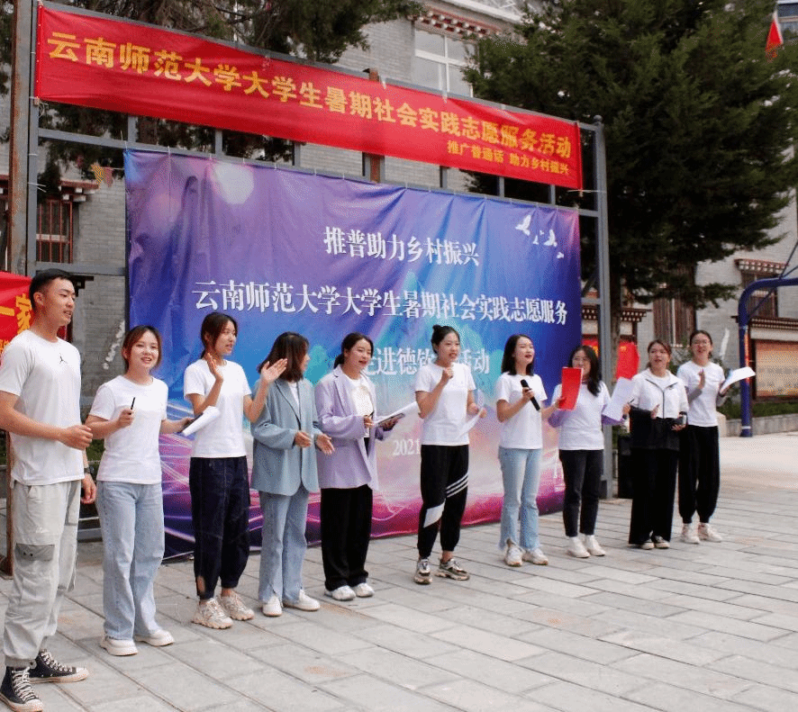7月21日至22日,由8858cc永利唯一官方网国家语言文字推广基地组织、传媒学院师生组成的“推普助力乡村振兴”全国大学生暑期社会实践志愿服务团队赴迪庆州德钦县升平镇,对当地群众开展推广普通话志愿服务。