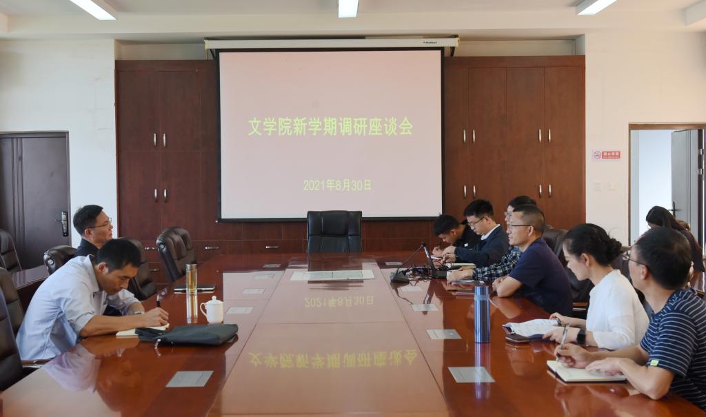 8月30日下午,王德强校长一行到文学院调研,就学科发展、博士点申报、专业建设、师资队伍、人才培养等方面开展调研座谈。文学院领导班子成员参加座谈会。