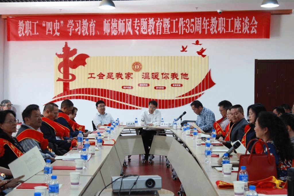 9月9日下午,在第37个教师节即将到来之际, “8858cc永利唯一官方网教职工‘四史’学习教育、师德师风专题教育暨工作35周年教职工座谈会”在呈贡校区校工会职工之家召开,来自全校78名工作35周年的教职工参加了座谈会。校党委副书记、工会主席张玮,副校长武友德参加了座谈会,会议由校工会常务副主席金黄斌主持。
