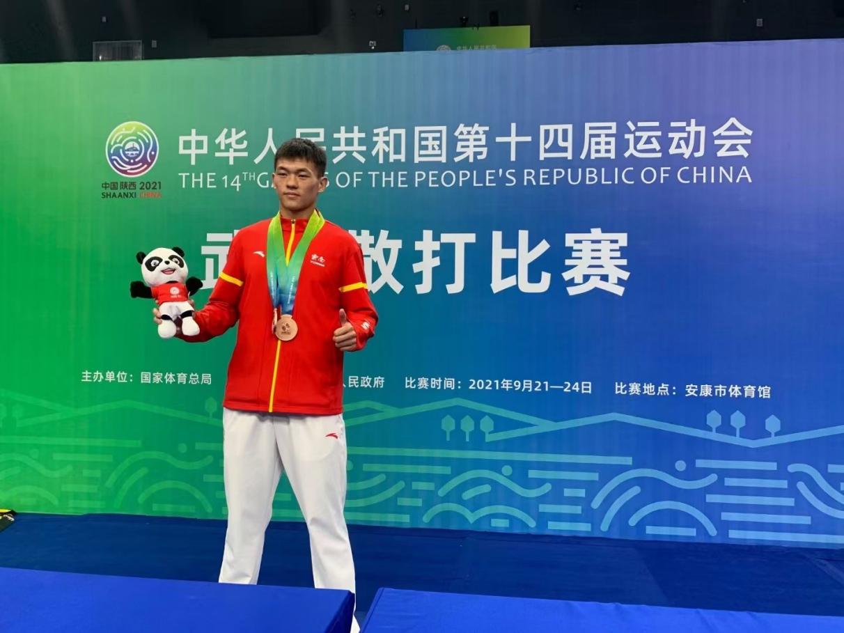 9月24日,第十四届全运会武术散打比赛决赛在陕西省安康市体育馆举行,永利官网体育学院学生吴超在男子90公斤级别项目摘得铜牌,这是云南散打全运会历史第一块奖牌,取得了历史性突破。