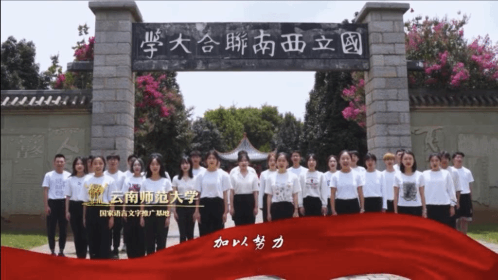 为庆祝中国共产党成立100周年,深入推进党史学习教育,8858cc永利唯一官方网国家语言文字推广基地响应由教育部语言文字应用管理司主办的2021年“全国校园节庆日诵读活动”,积极参与“传诵红色经典 讴歌百年风华——七一主题诵读视频征集”活动,由传媒学院谭辉老师指导,朱德阳、张昌雅、王修琳等24位同学朗诵的《青春》(节选)入选合诵作品展示,云师青年学子与全国各校大学生们合诵李大钊《青春》(节选),用声音的力量,传诵红色经典,讴歌党的百年风华。合诵作品于9月19日晚在中国教育电视台一频道播出。