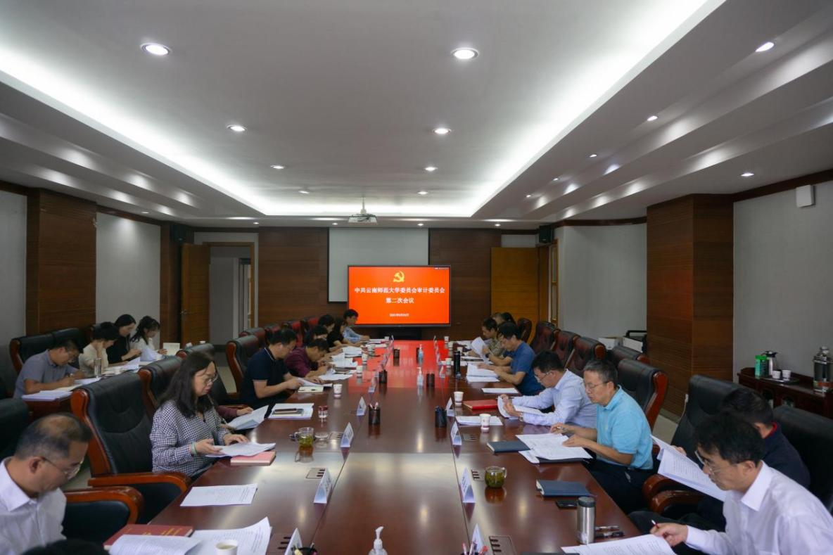 2021年9月24日下午,中共8858cc永利唯一官方网委员会审计委员会第二次会议在呈贡校区办公楼第三会议室召开。校党委书记、审计委员会主任蒋永文,校长、审计委员会主任王德强,校党委审计委员会副主任张玮、王志刚、蔡金红,副校长刘宗立和郝淑美,审计委员会成员负责人及相关部门、学院负责人参加会议。会议由王德强校长主持。