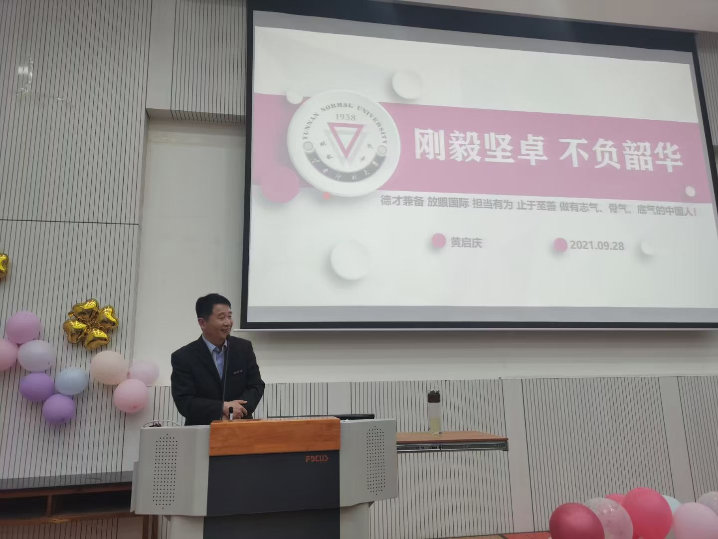 9月28日晚,云南华文学院、国际汉语教育学院在同析2栋报告厅举行了2021级新生开学典礼,学院领导、辅导员、班主任及全体2021级本研新生参加了开学典礼,典礼由学院党委副书记常数主持。