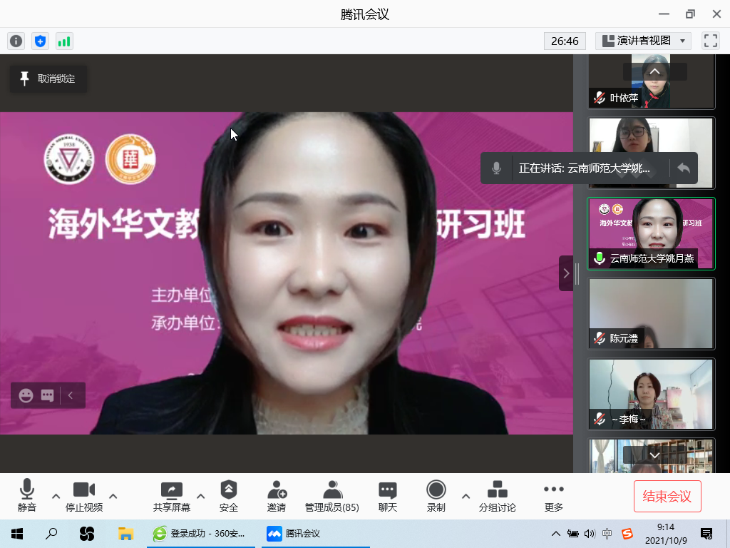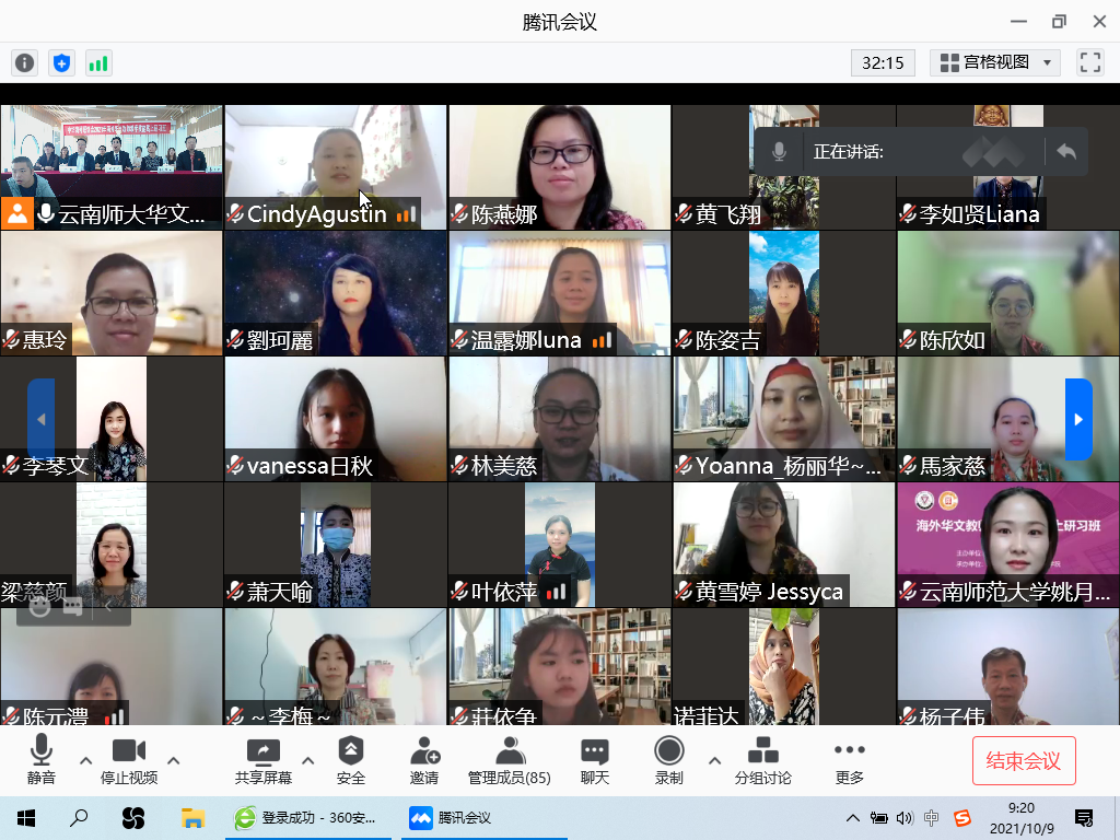 10月9日上午,由国务院侨务办公室主办,永利官网云南华文学院承办的2021年海外华文教师教学技能线上研习班开班仪式在线上顺利举行。来自印度尼西亚16个省、68所学校的138名华文教师参加了开班仪式。
