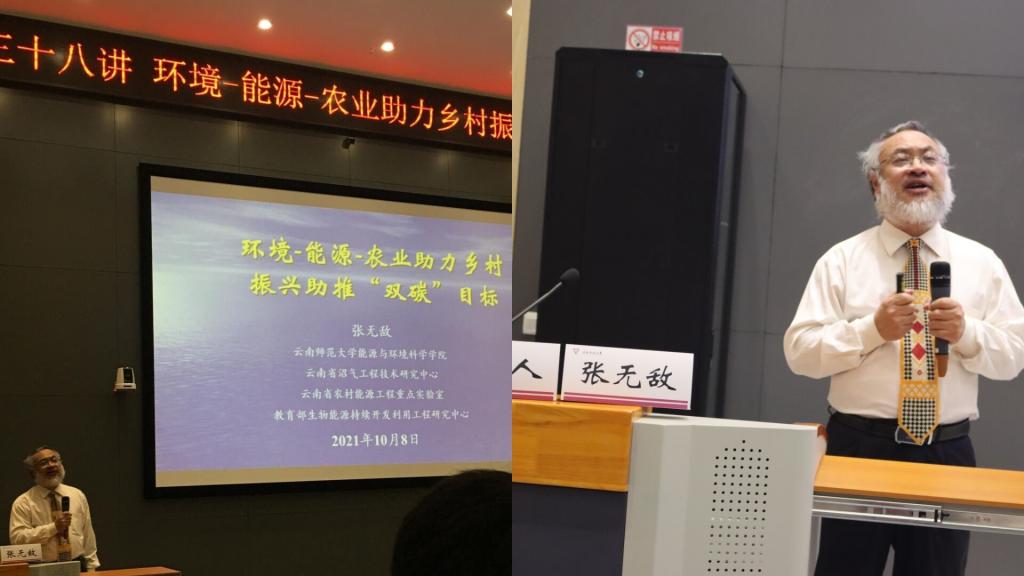 值联合国《生物多样性公约》第十五次缔约方大会在昆明召开之际,10月8日晚,由学生处承办的第三十八讲云师讲坛,邀请了被同学们称为“大胡子教授”的张无敌老师为永利官网师生做了以“环境—能源—农业助力乡村振兴助推‘双碳’目标”为主题的报告,分享了他多年来在教学科研实践中,如何改善生态环境,保护生物多样性的一些思考和启示。此次讲座由能源与环境科学学院党委副书记范荣康主持,来自各学院(学部)、万名校长培训班的600多名师生通过网络直播观看和现场聆听了本次讲座。