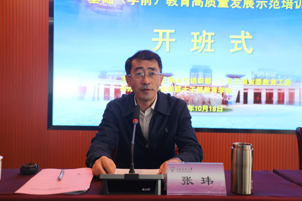 10月18日上午,由省委组织部、省委教育工委联合主办,云南西南联大干部教育学院承办的“基础教育(含学前)高质量发展示范培训班”在云南西南联大干部教育学院顺利开班,16个州(市)的幼儿园、小学、初中、高中学校的64名负责同志参加。开班仪式由云南西南联大干部教育学院副院长王宏伟主持。