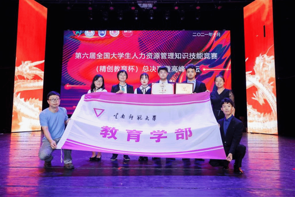 教育学部自2016年以来连续六年组织学生参加全国大学生人力资源管理知识技能竞赛,均取得较优异的成绩,充分展现了指导教师爱岗敬业的师德品质、学生扎实的专业技能、勇于拼搏的精神风貌和团结协作的团队精神。教育学部始终坚持“以赛促学”和“以赛促教”的理念,积极支持师生参赛,一方面,让学生对所学专业知识有深入的了解和实践,开拓了眼界,提升学生的综合素质;另一方面,有利于教育学部教师积极探索和创新本科生跨专业联合实验和实践教学,不断提高本科生人才培养质量。在全国大学生技能比赛中获奖,也是教育学部系统推进“考研工程”“学科竞赛工程”“学术训练工程”,促进学风转变和提升人才培养质量的阶段性成果之一。