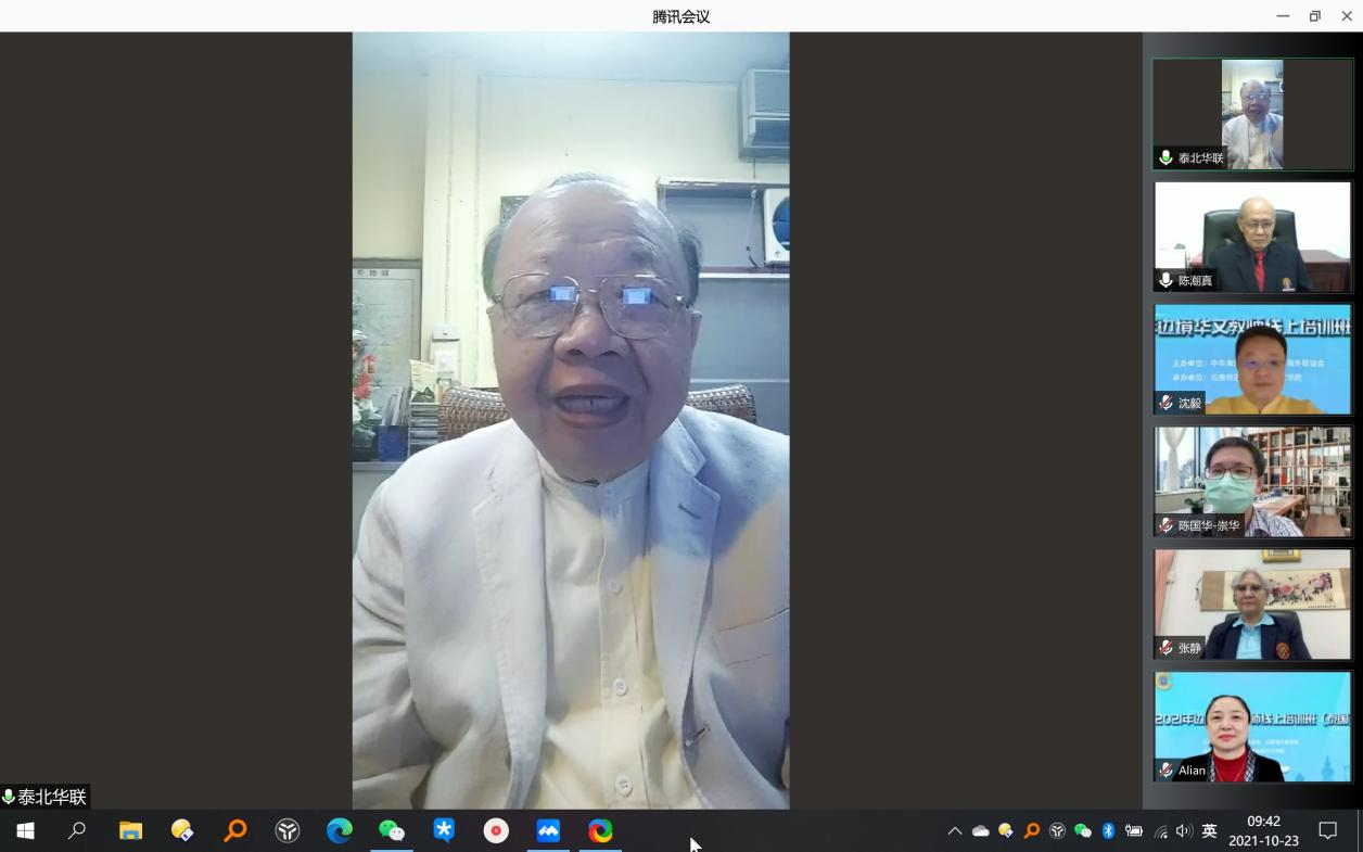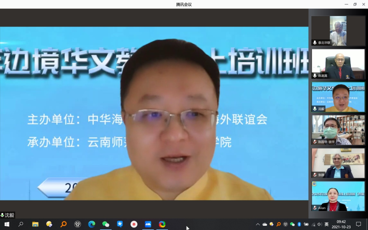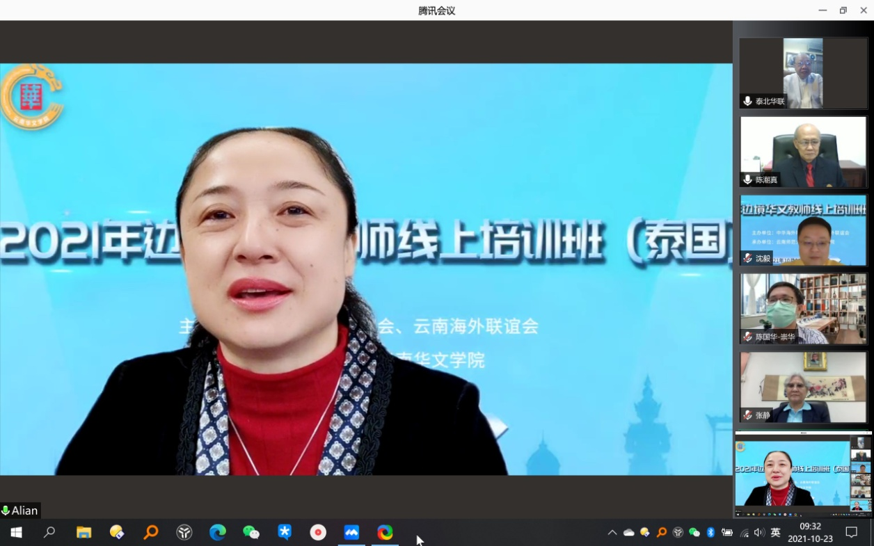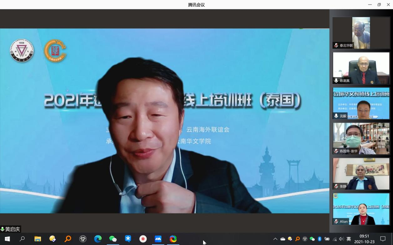 10月23日上午,由中华海外联谊会、云南海外联谊会主办,8858cc永利唯一官方网云南华文学院承办的2021年边境华文教师线上培训班(泰国)开班仪式顺利举行,来自泰国清迈崇华新生华立学校、南邦美速智民学校、北揽坡同德学校的领导和87名本土华文教师参加开班仪式。