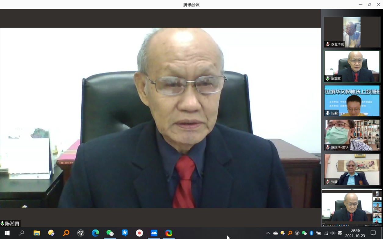 泰国崇华新生华立基金会主席、崇华新生华立学校法人代表陈潮真主席在致辞中表示,此次培训班项目充分体现了中国政府对海外华文教育的重视和对华文教师的关怀。此次线上培训内容丰富多彩、切合实际,受到了华文教育者的广泛支持,崇华新生华立学校将组织好参训学员认真完成培训任务。