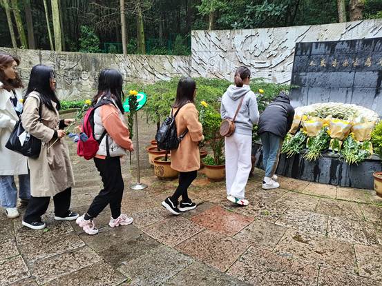 伴着蒙蒙细雨,气氛庄严肃穆,全体党员同志怀着崇敬的心情,在聂耳墓前默哀、献花、重温入党誓词,李光玉同志代表学生党员发言。李光玉同志表示,没有先辈的浴血奋战,没有我们的当下,作为一名共产党员,我们应当永远铭记我们的党出生在一个血雨腥风的年代,更不能忘记走过去的历程,是那样的曲折不平坦。活动中大家一起参观了聂耳纪念馆,了解聂耳事迹、生平。