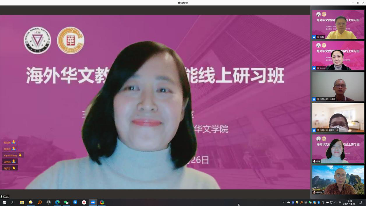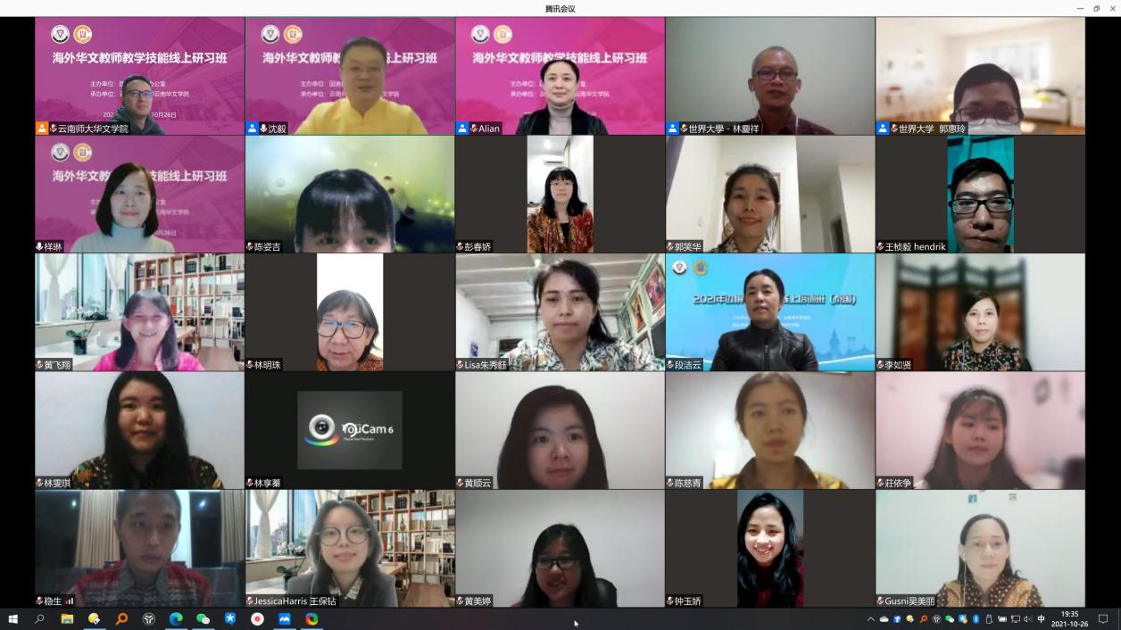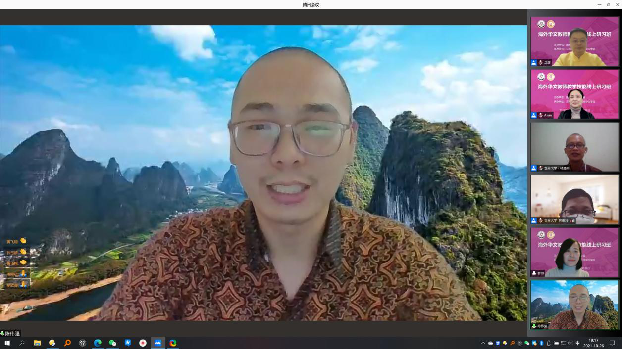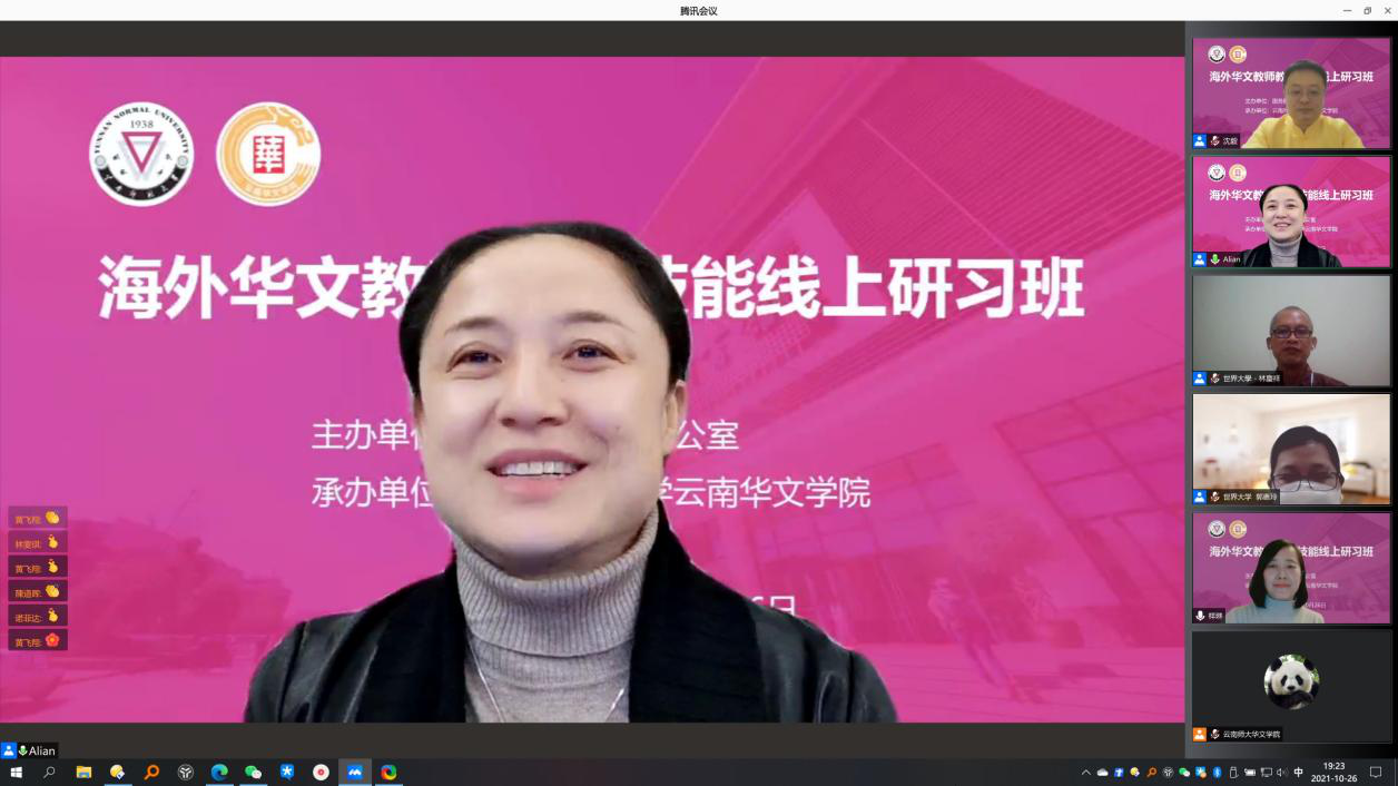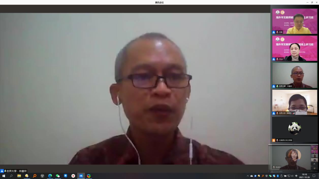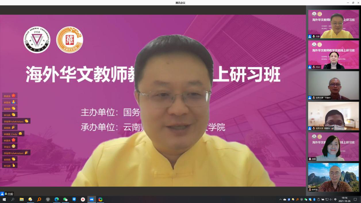 10月26日,由国务院侨务办公室主办、8858cc永利唯一官方网云南华文学院承办的2021年海外华文教师教学技能线上研习班结业仪式在线上顺利举行。印度尼西亚世界大学林庆祥副校长,云南华文学院和雪莲书记、王秀成院长以及学院相关领导出席,来自印度尼西亚16个省、68所学校的参训华文教师参加了结业仪式,仪式由8858cc永利唯一官方网汉推基地常务副主任沈毅教授主持。