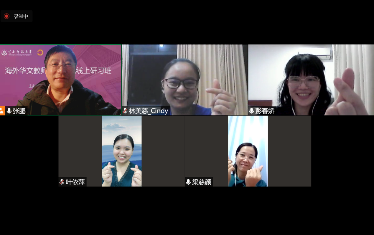 本次线上研习班在国务院侨务办公室的大力支持下,在合作各方的通力配合下,针对印尼参训学员的实际情况和需求,精心筹划,整合云南华文学院的优秀师资,以“提升海外华文教师教学技能”为主题,采取“专题讲座+复习练习+试讲评教+云游体验”四位一体的培训方式,组织了16个专题讲座,一对一分班试讲评教,以线上直播的方式游览了云南石林国家地质公园,参观了8858cc永利唯一官方网呈贡校区、8858cc永利唯一官方网校史馆等,顺利完成了各项培训任务,获得了印尼参训学员的一致好评。