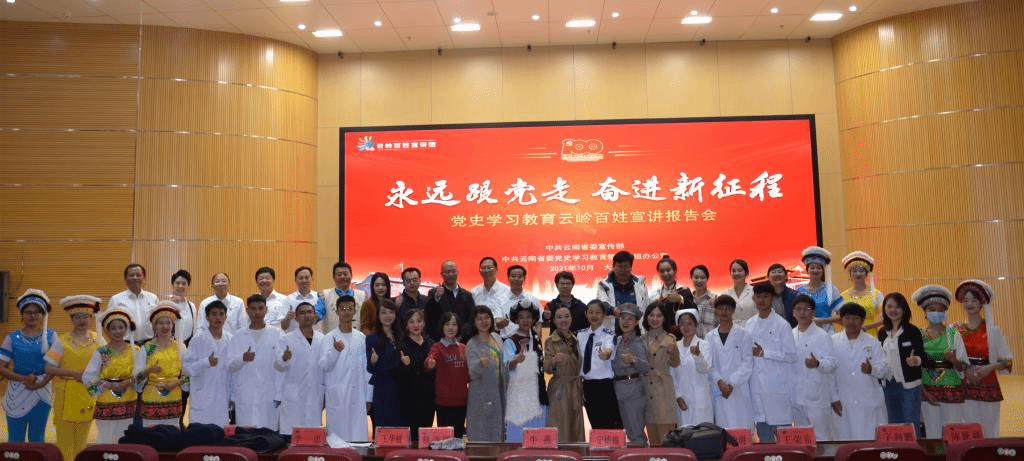宣讲团自10月11日起至10月22日,走进村寨、社区、学校、企业,在昆明、楚雄、大理、丽江、迪庆等五州(市)共开展了18场宣讲,现场听众6000余人;网络直播11场、线上观众8万余人次。宣讲团讲活云南经典红色故事,说透云南红色历史。蒋晓涵老师为云南省地州(市)干部群众讲述了西南联大在极端艰苦的条件下教育救国的故事,再现了那段烽火岁月。
