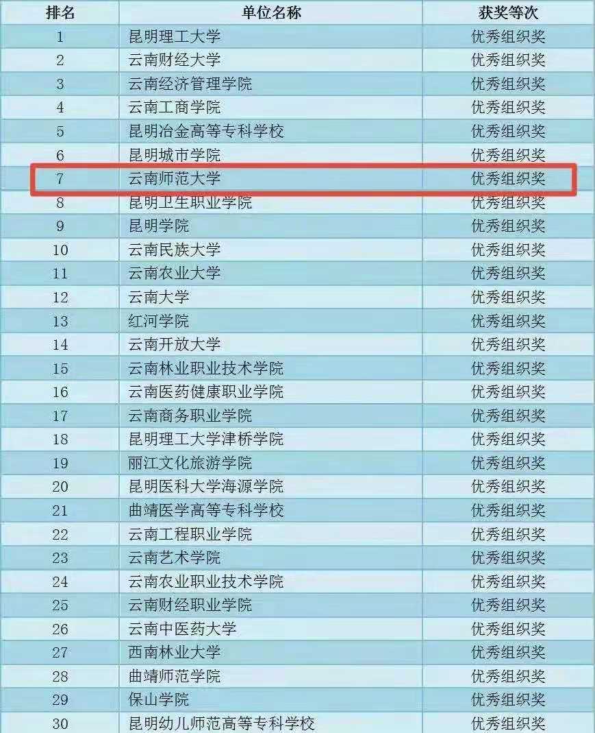 11月4日,由COP15云南省筹备办新闻宣传部、云南省文化和旅游厅、云南省教育厅、云南省生态环境厅、云南省侨联特组织开展的“COP15知识挑战赛”最终获奖名单出炉。永利官网积极组织师生参加此次挑战赛,荣获优秀组织奖。经过激烈角逐,个人获奖TOP100中,8858cc永利唯一官方网共1人获特等奖,10人获一等奖,获奖人数位居全省第二。