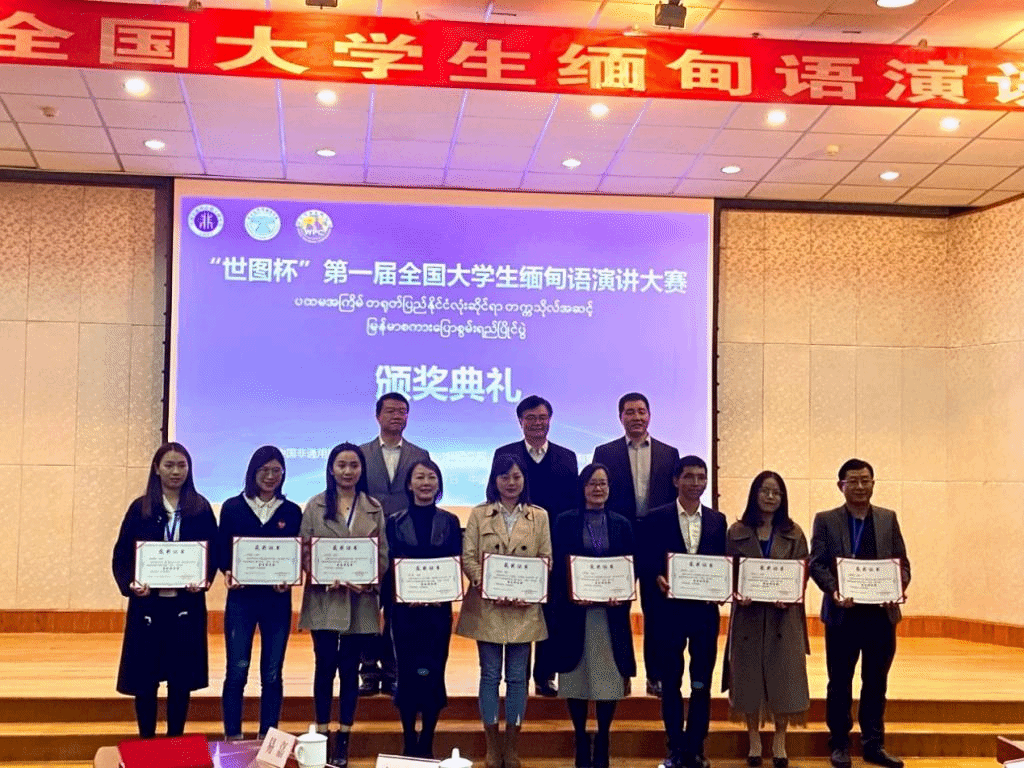 经过激烈角逐,永利官网在第一届全国大学生缅甸语演讲大赛斩获佳绩,共获5个一等奖、3个二等奖,3个三等奖的好成绩,是20余所参赛高校中获奖人数最多、一等奖获奖人数最多的学校。王丽凤老师、高萍老师、徐跃明老师荣获最佳指导奖、高晓艳老师荣获指导优胜奖。